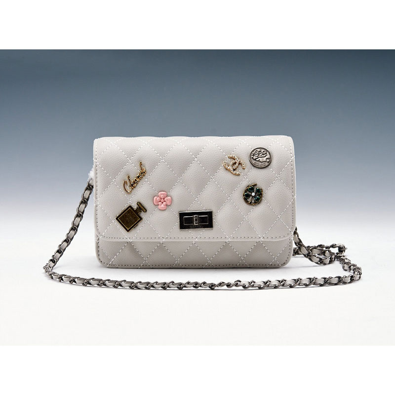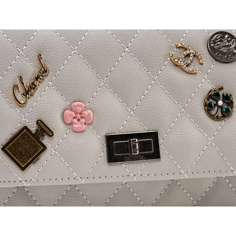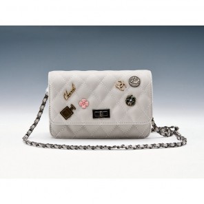 2015 Chanel Badge Bag Flap Shoulder Bag Sheepskin Leather A8878 Grey