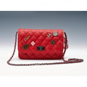 2015 Chanel Badge Bag Flap Shoulder Bag Sheepskin Leather A8878 Red