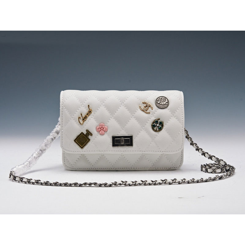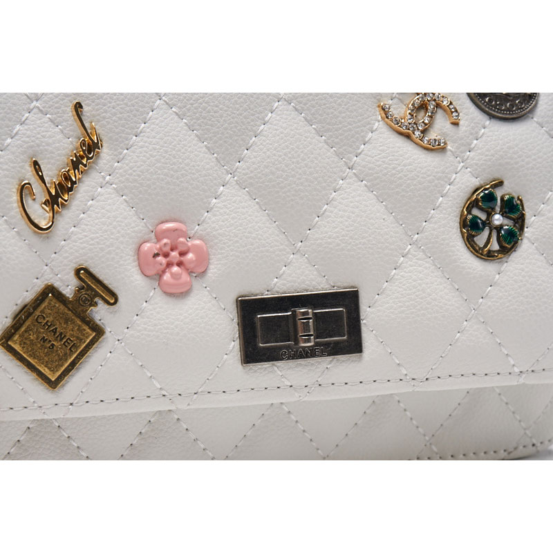 2015 Chanel Badge Bag Flap Shoulder Bag Sheepskin Leather A8878 White