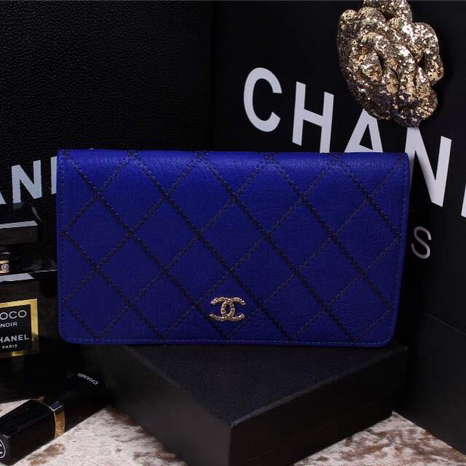 2015 Chanel Bi-Fold Wallet in Original Leather A9555 Blue