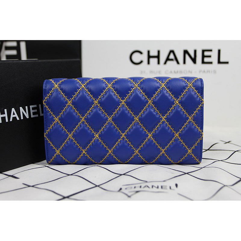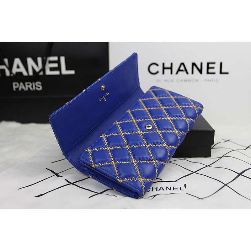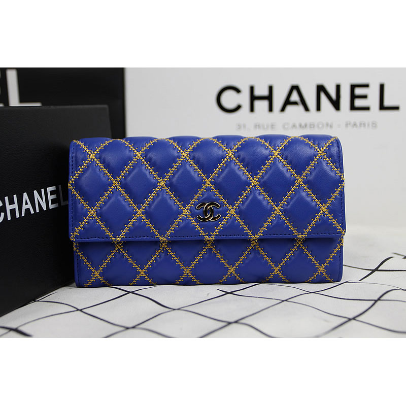 2015 Chanel Camellia Tri-Fold Wallet Original Leater A50084 Blue