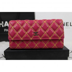 2015 Chanel Camellia Tri-Fold Wallet Original Leater A50084 Red