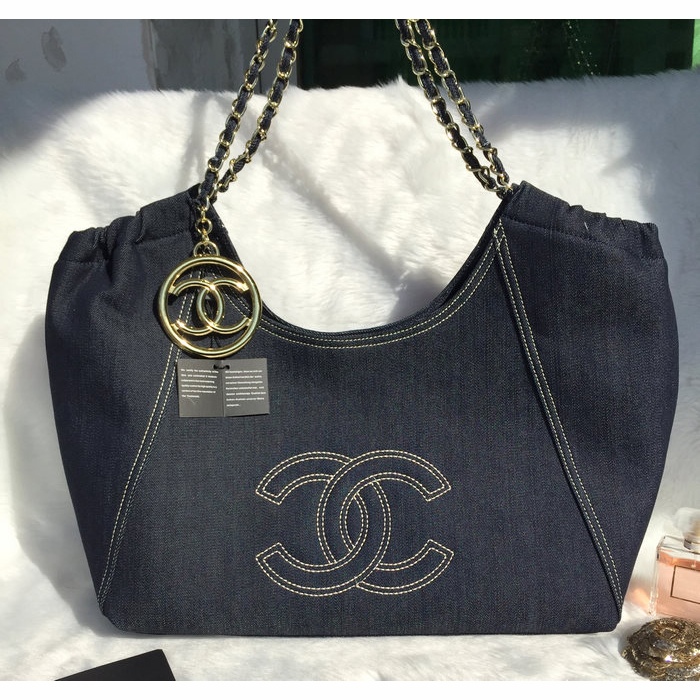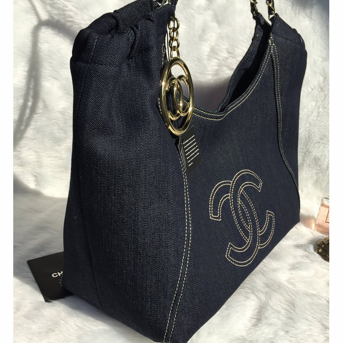 2015 Chanel Classic Denim Large Shoulder Bag A33450 Black with Gold