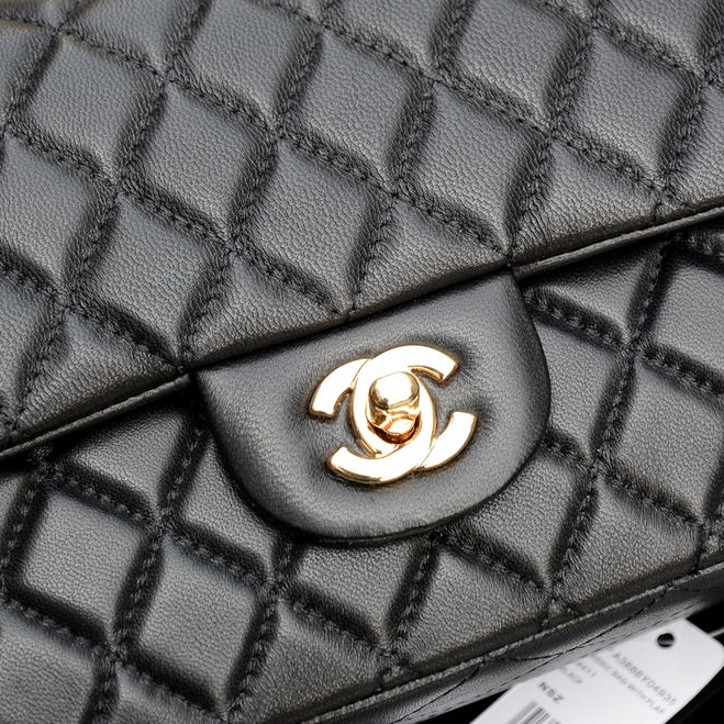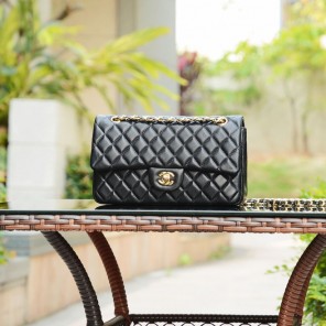 2015 Chanel Classic Flap Bag Black Sheepskin leather A37586 Gold