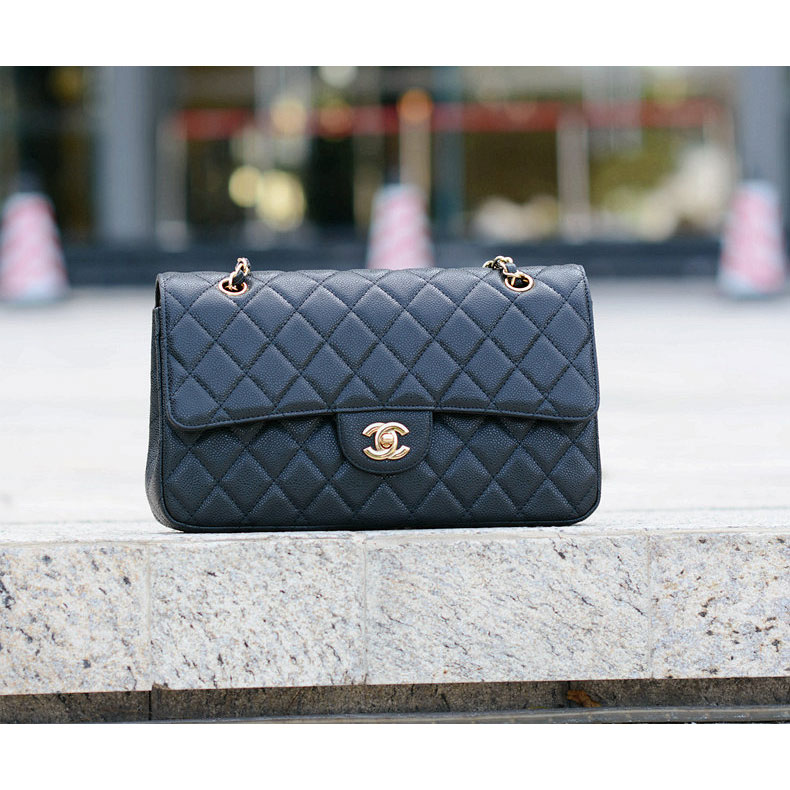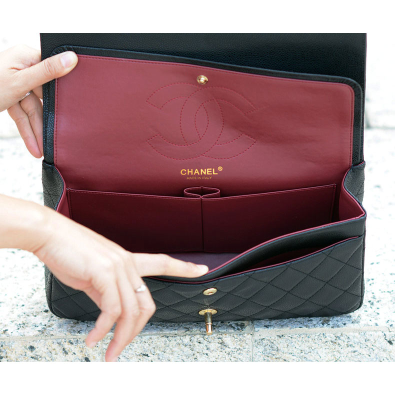 2015 Chanel Classic Flap Bag Caviar Leather 1113 Black with Gold