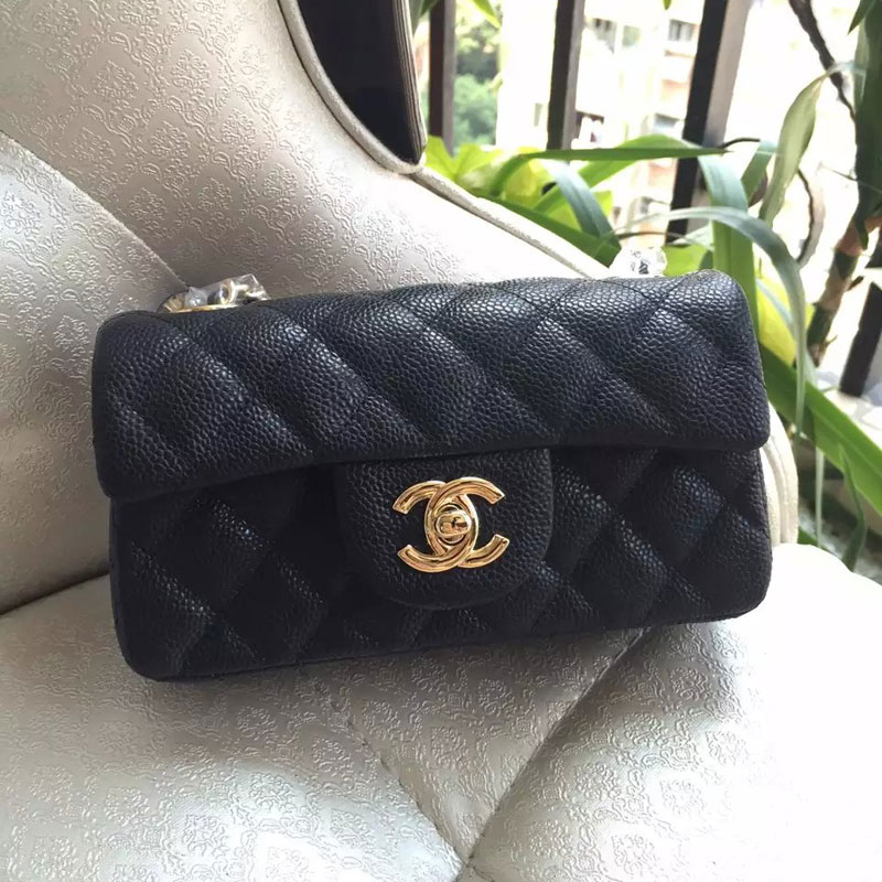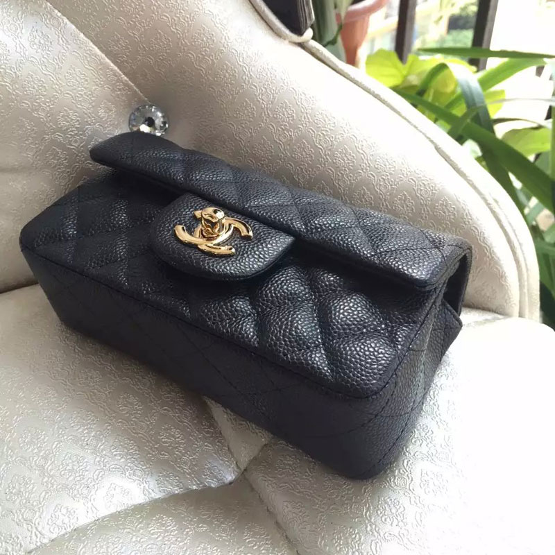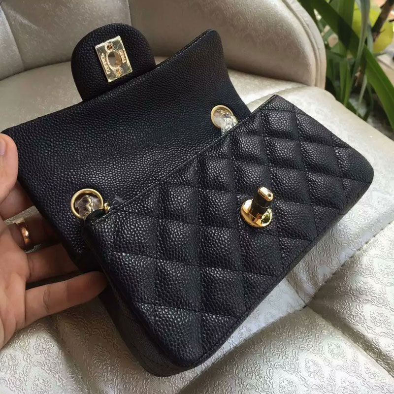 2015 Chanel Classic Flap Bag Original Caviar Leather A6035 Black with Gold