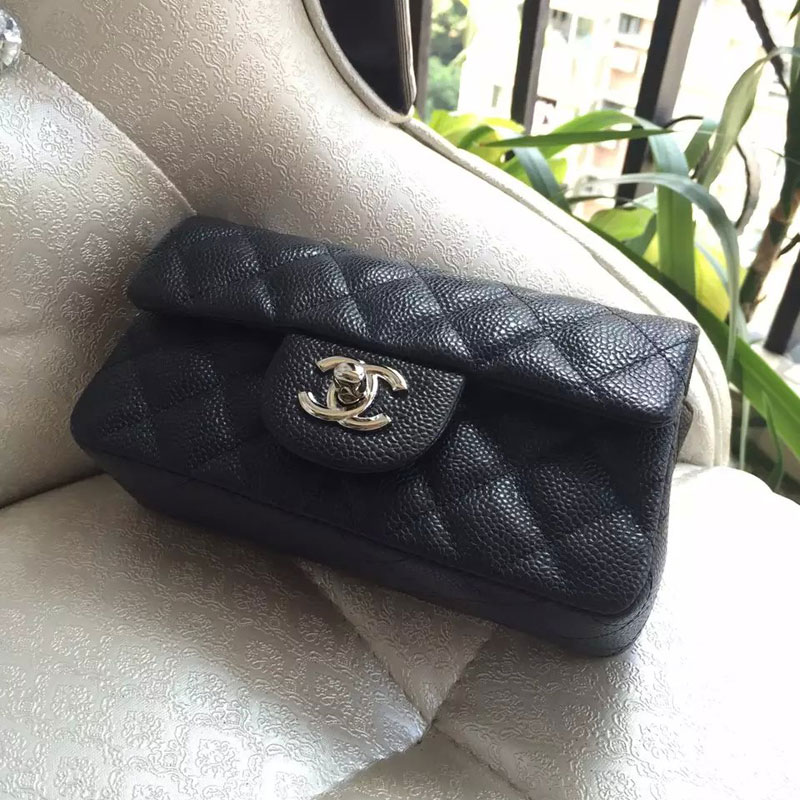 2015 Chanel Classic Flap Bag Original Caviar Leather A6035 Black with Silver
