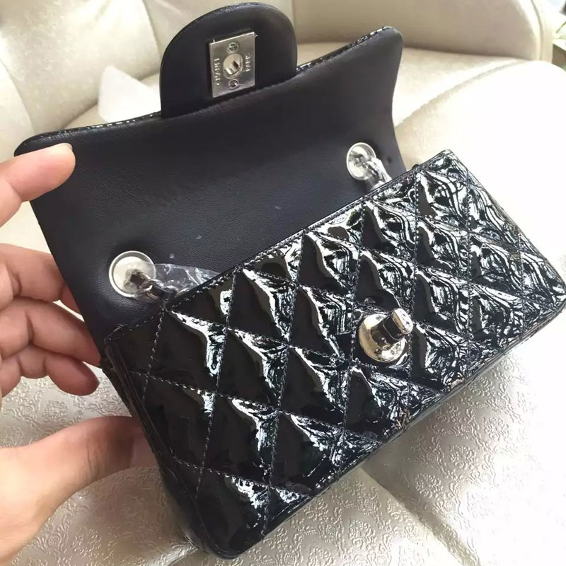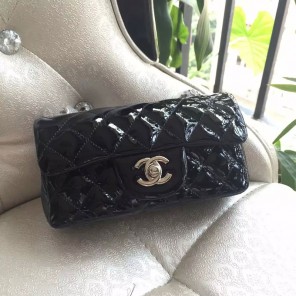 2015 Chanel Classic Flap Bag Original Patent Leather A6035 Black with Silver
