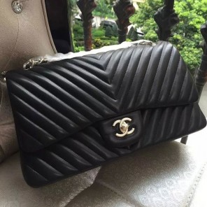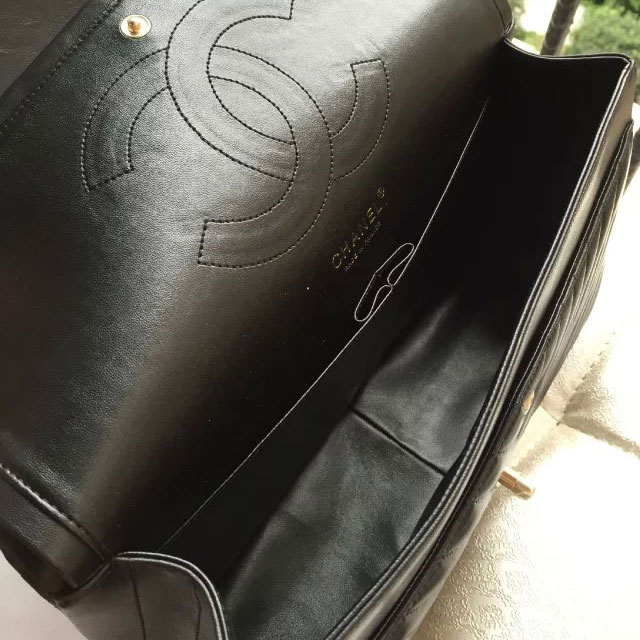 2015 Chanel Classic Flap Bag Original Sheepskin Leather 1113 Black with Gold