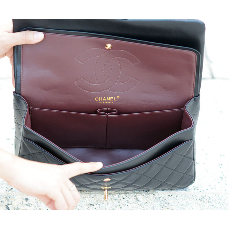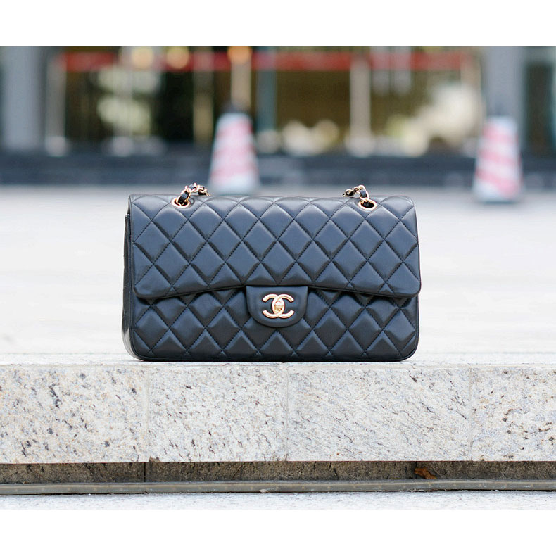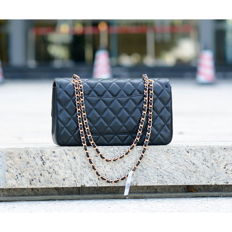 2015 Chanel Classic Flap Bag Original Sheepskin Leather 1113 Black with Gold