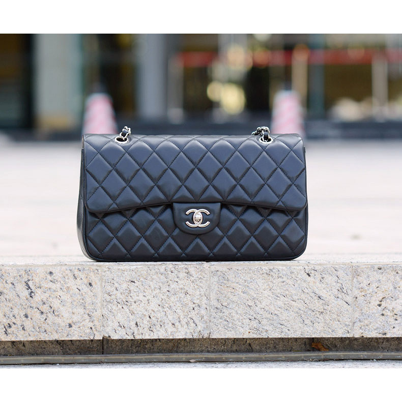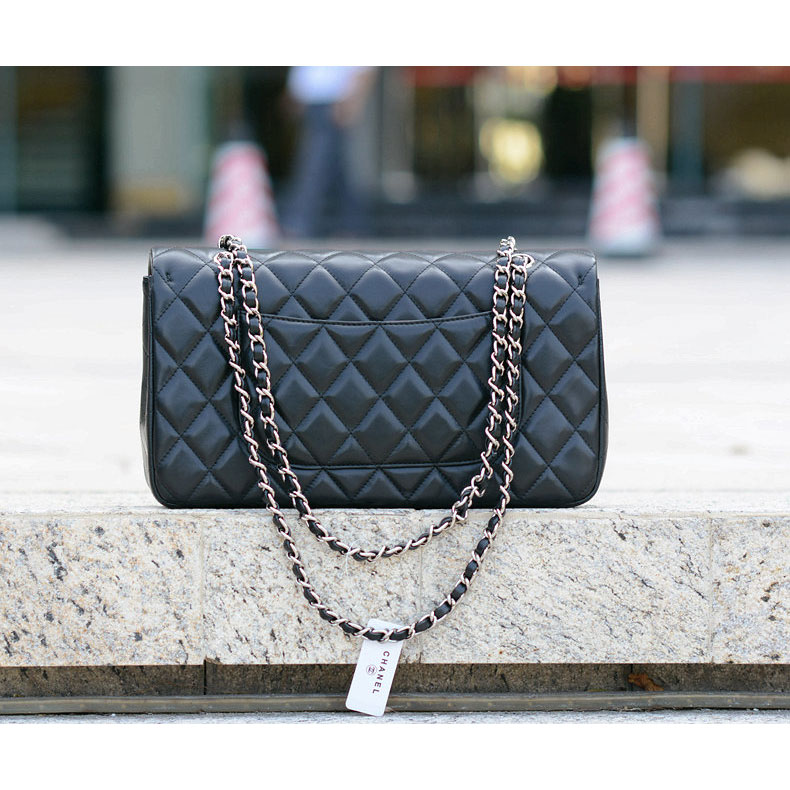 2015 Chanel Classic Flap Bag Original Sheepskin Leather 1113 Black with Silver