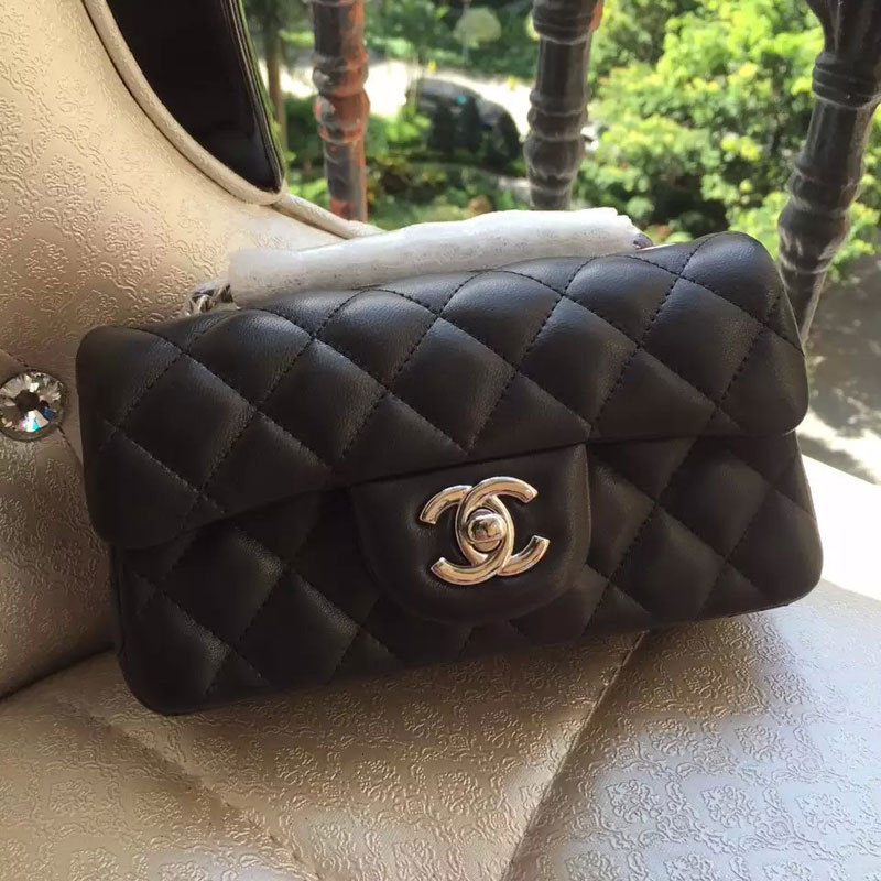 2015 Chanel Classic Flap Bag Original Sheepskin Leather A6035 Black with Silver