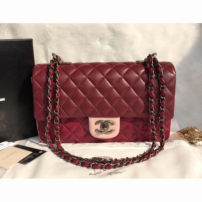 2015 Chanel Classic Flap Bag Sheepskin Leather A92663 Burgundy