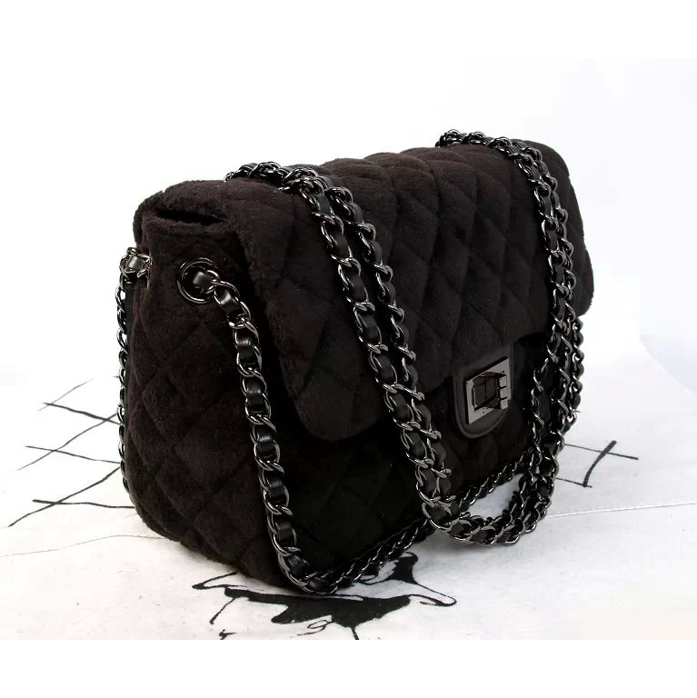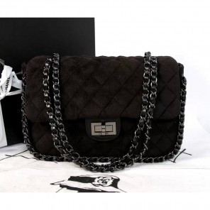 2015 Chanel Classic Flap Bag Villus A00187 Black