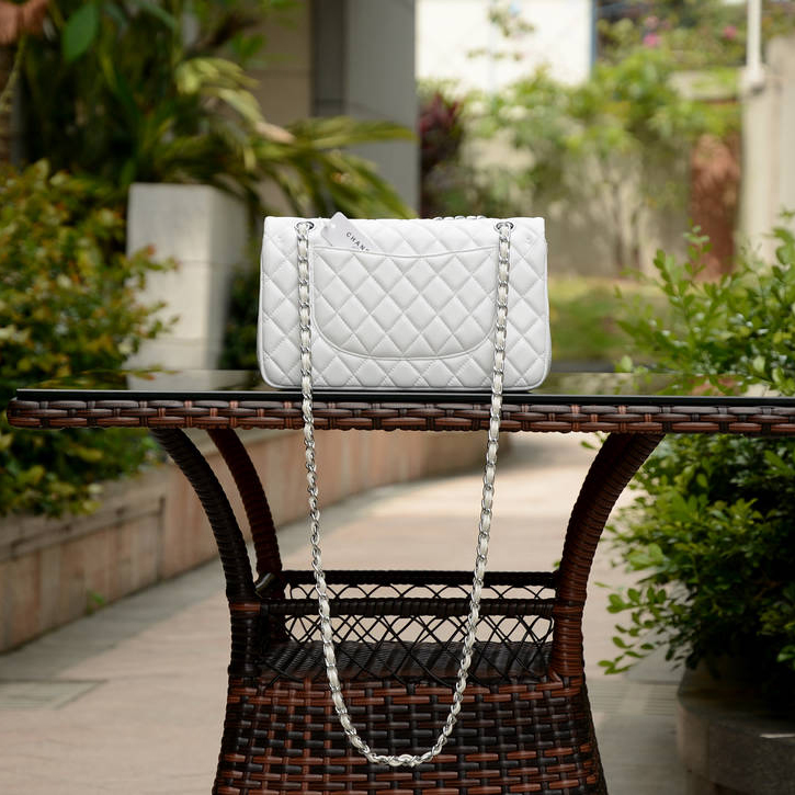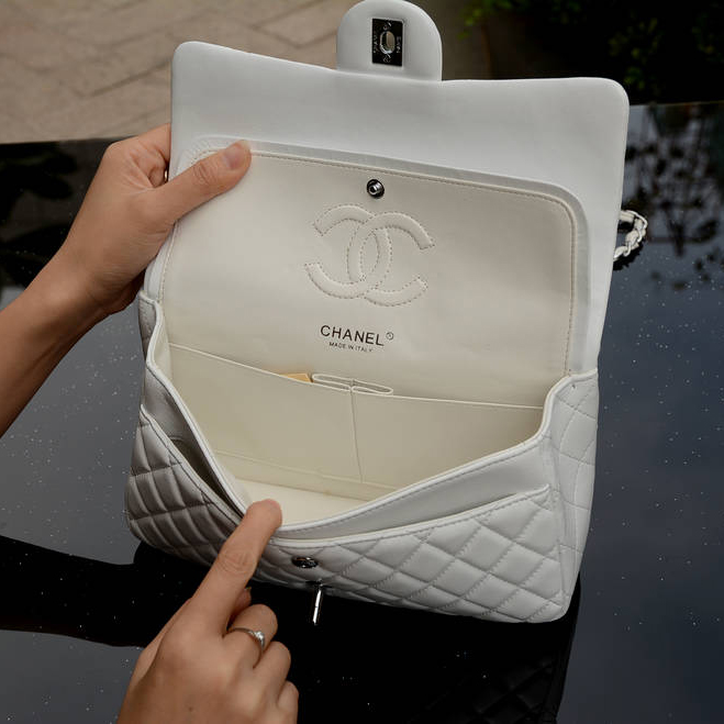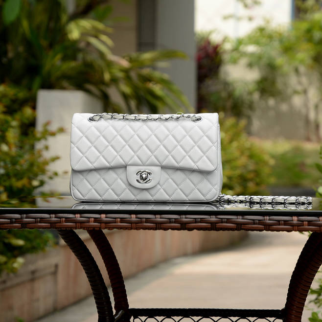 2015 Chanel Classic Flap Bag White Sheepskin leather A37586 Silver