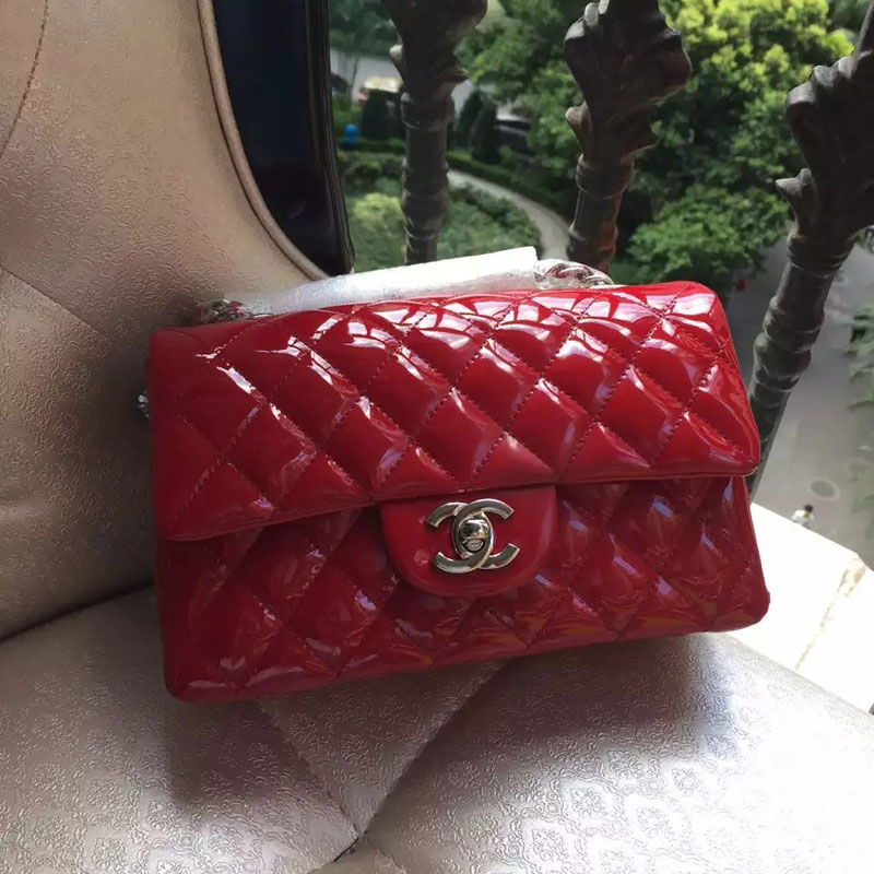 2015 Chanel Classic Flap Bags Original patent leather A1116 in Red