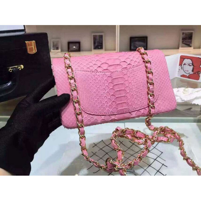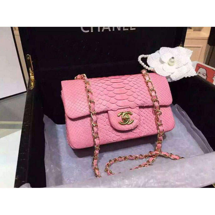 2015 Chanel Classic Flap Bags Python Leather A1116 Pink