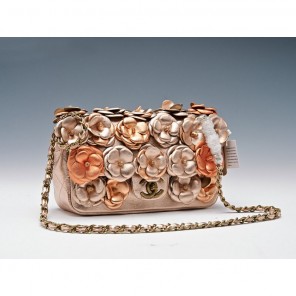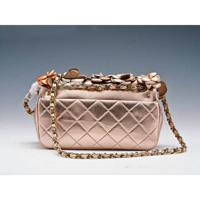 2015 Chanel Classic Flap Camellia Bag Sheepskin Leather A8870 Gold
