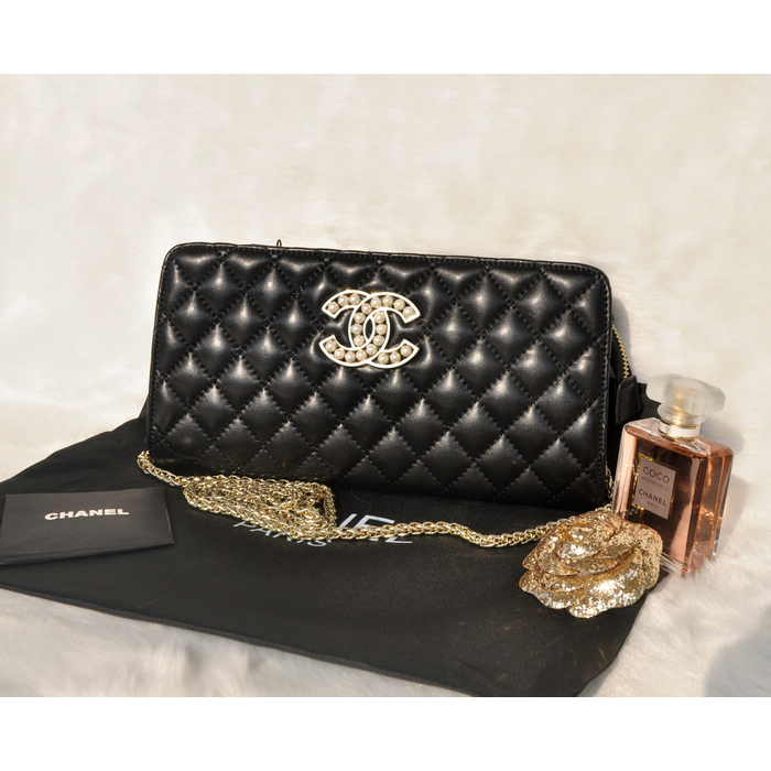 2015 Chanel Clutch Shoulder Bag Sheepskin Leather A94306 Black
