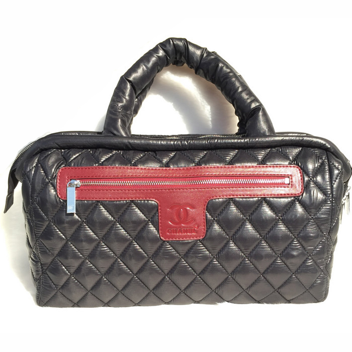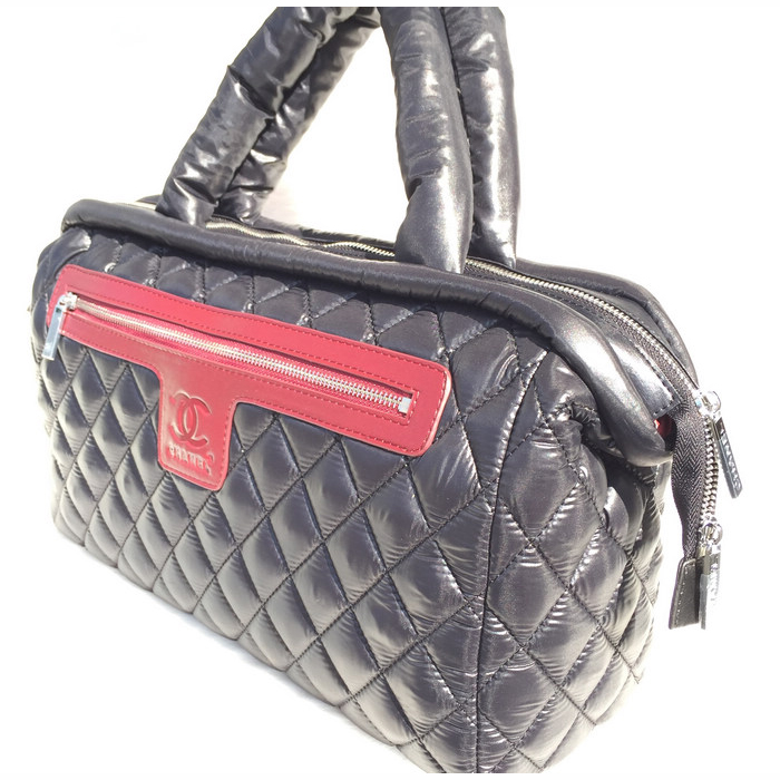 2015 Chanel Coco Cocoon Satchel Bag eiderdown A47205 Black&Red