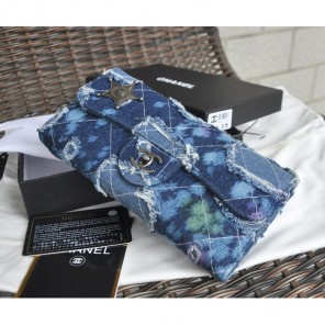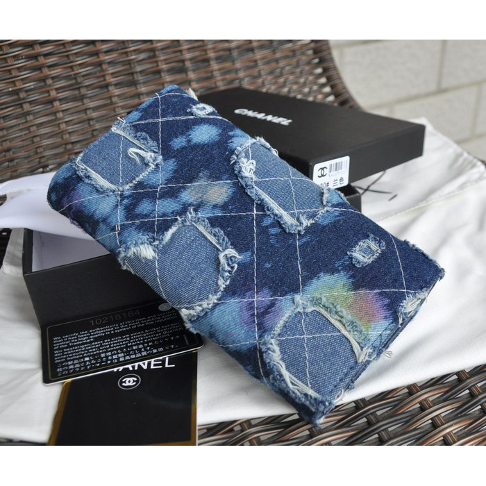2015 Chanel Denim Patchwork Matelasse Continental Wallet A330 Blue