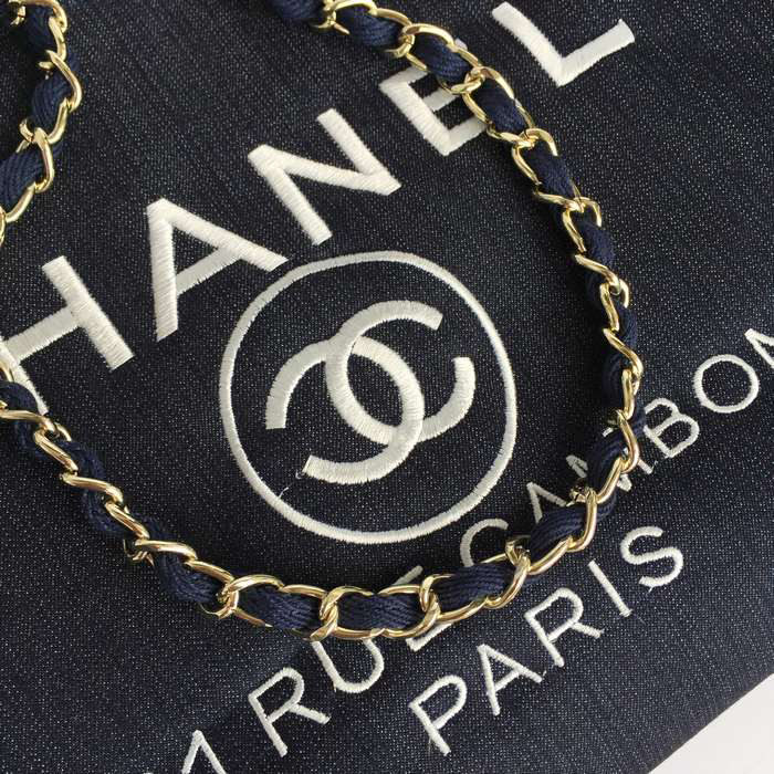 2015 Chanel Large Canvas Tote Shopper Bag A68046 DarkBlue&Royal