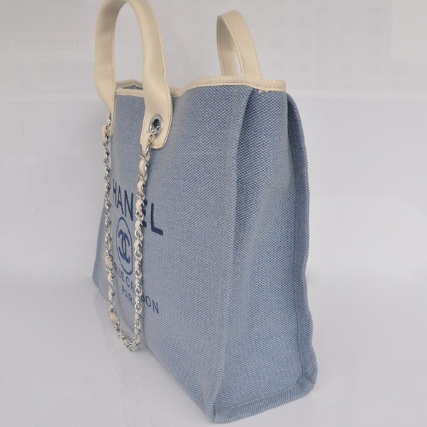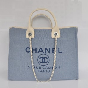 2015 Chanel Large Canvas Tote Shopper Bag A68046 Light Blue