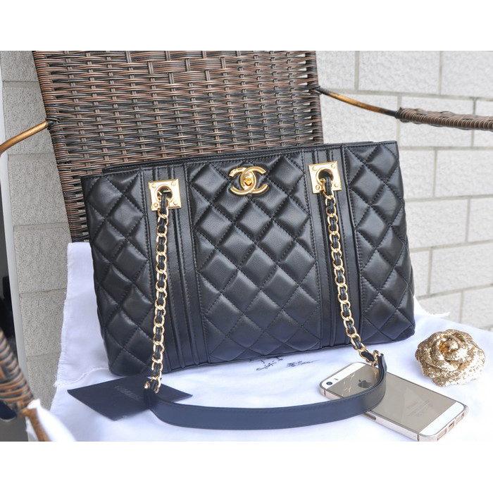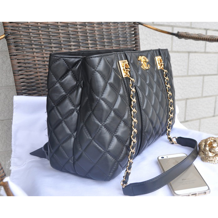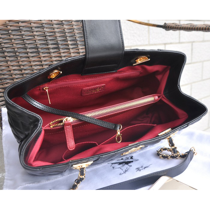 2015 Chanel Large Shopping Bag Lambskin Leather A8209 Black