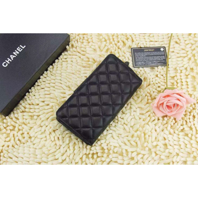 2015 Chanel Matelasse Bi-Fold Wallet Calfskin Leather A219009 Black