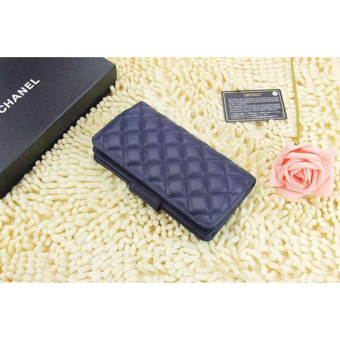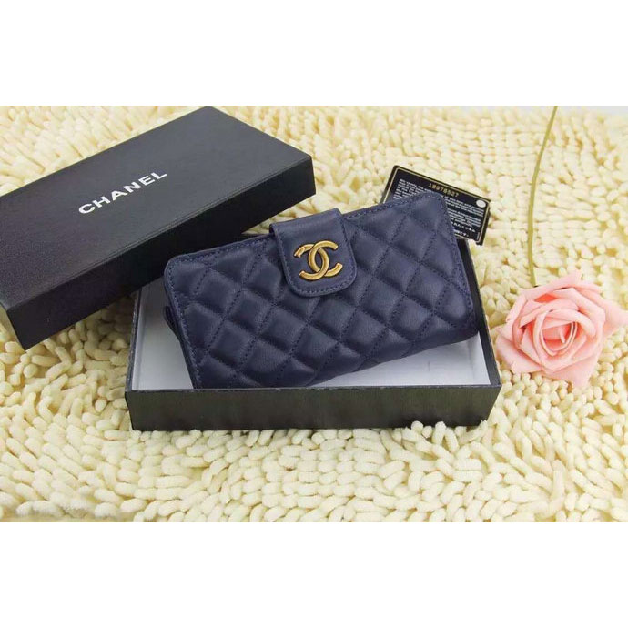 2015 Chanel Matelasse Bi-Fold Wallet Calfskin Leather A219009 Royal