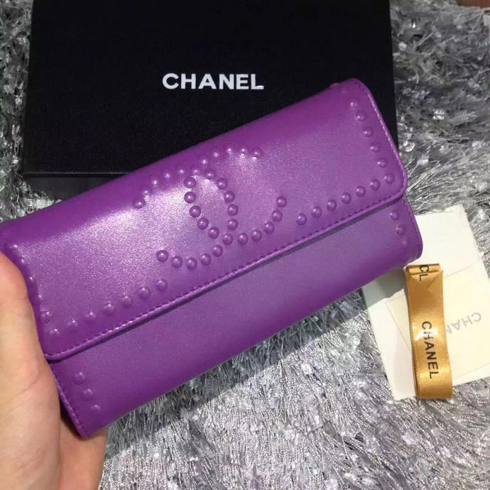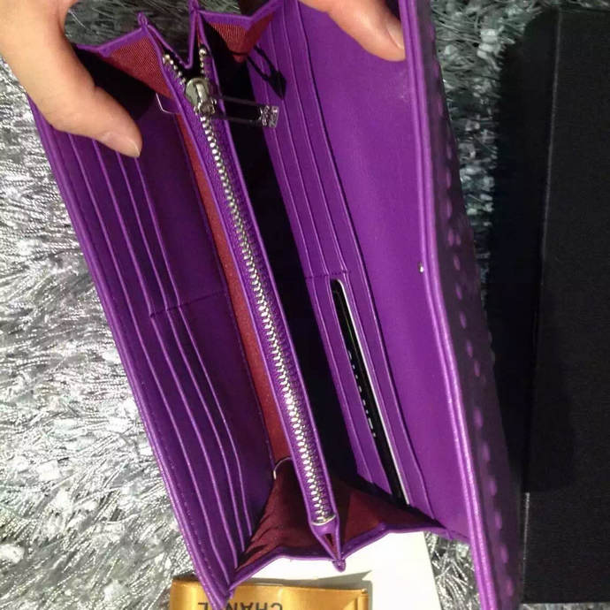 2015 Chanel Matelasse Bi-Fold Wallet Calfskin Leather A66608 Purple