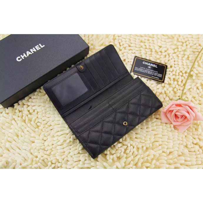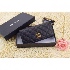 2015 Chanel Matelasse Bi-Fold Wallet Original Leather A219002 Black