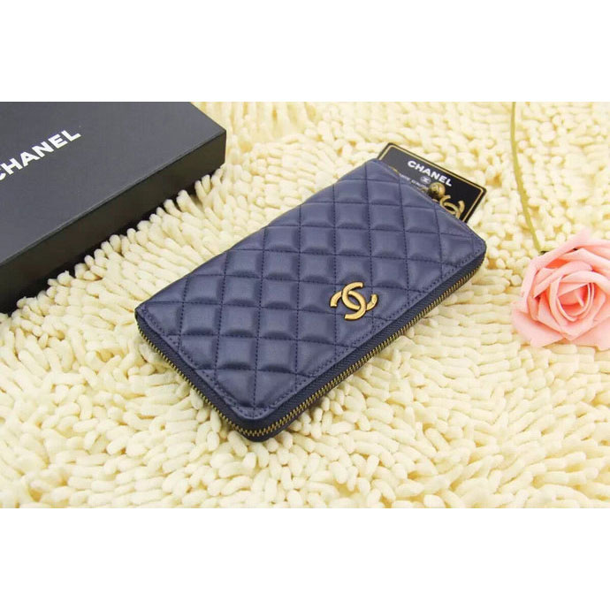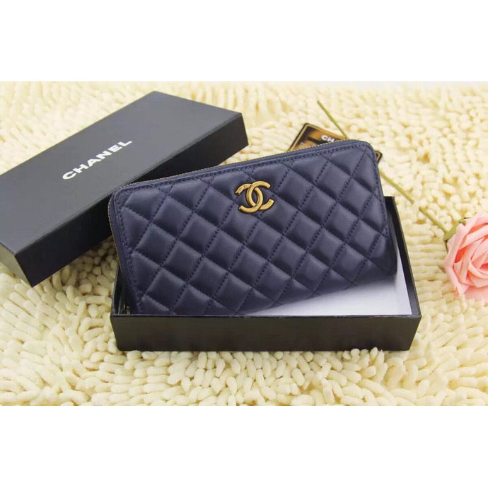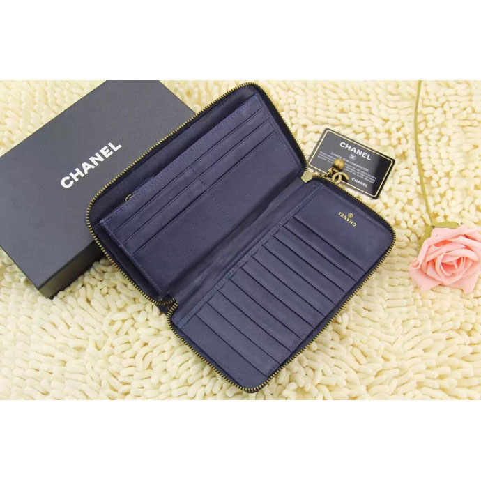 2015 Chanel Matelasse Calfskin Leather Zip Around Wallet A219007 Royal