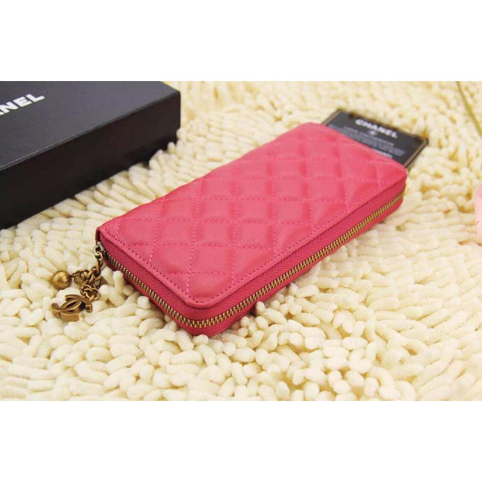 2015 Chanel Matelasse Original Leather Zip Around Wallet A219004 Rose