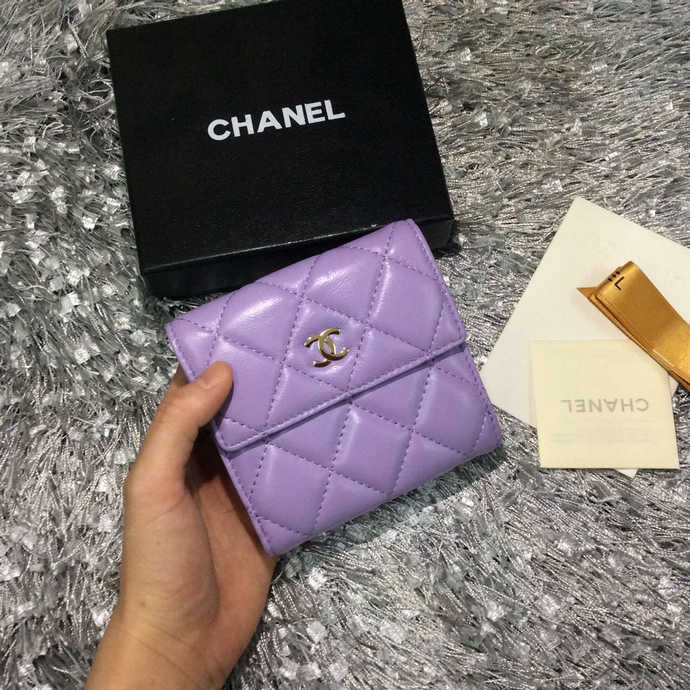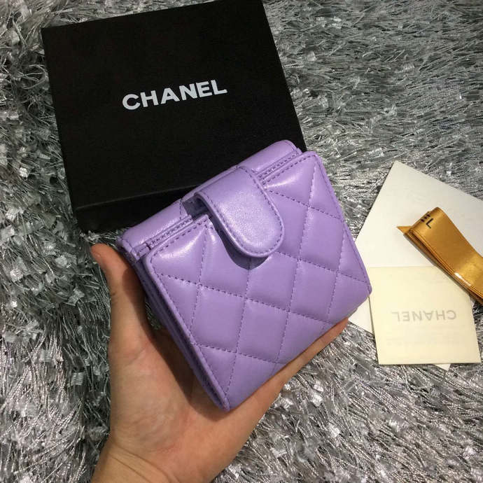 2015 Chanel Matelasse Tri-Fold Wallet Original Sheepskin Leather A48980 Purple