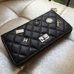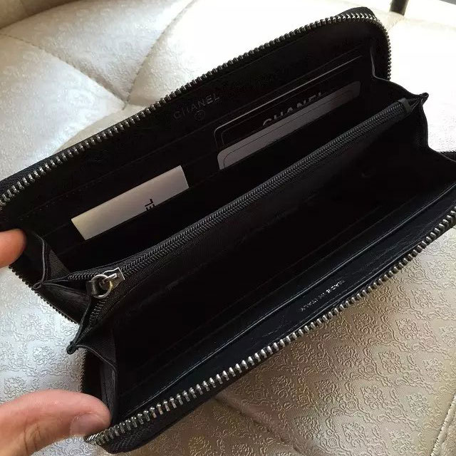2015 Chanel Matelasse Zip Around Wallet Original Leather A80445 Black