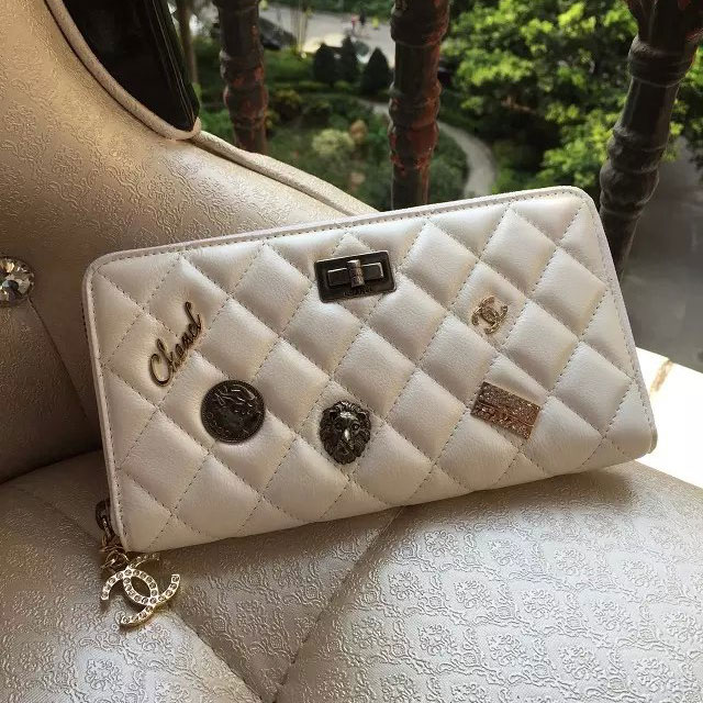 2015 Chanel Matelasse Zip Around Wallet Original Leather A80445 Offwhite