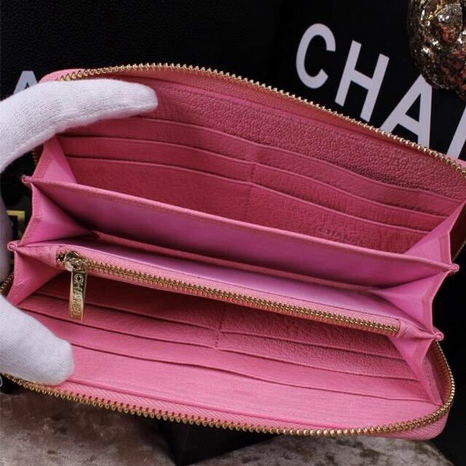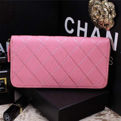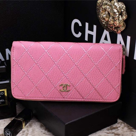 2015 Chanel Matelasse Zip Around Wallet Original leather A9559 Pink