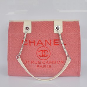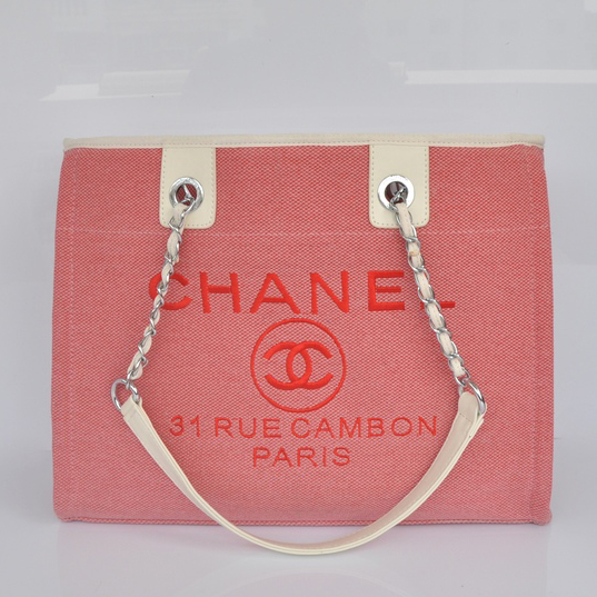 2015 Chanel Medium Canvas Tote Shopper Bag A68045 Pink