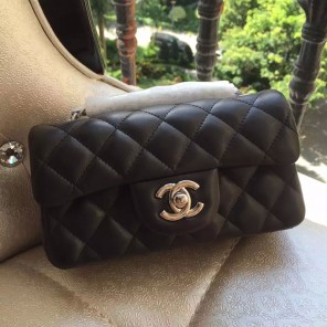 2015 Chanel Mini Flap Bag Original Sheepskin Leather A34008 Black