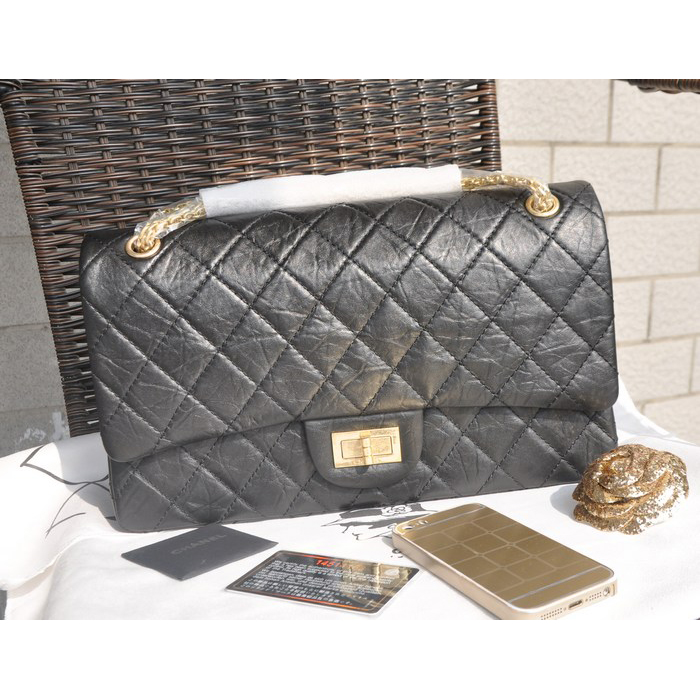 2015 Chanel Original Glazed Crackled Leather Classic Flap Bag A30227 Black