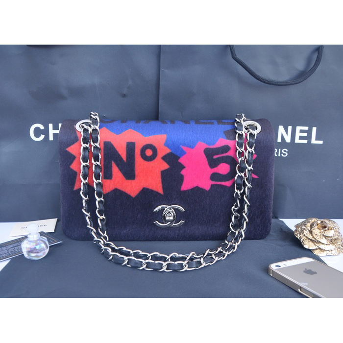 2015 Chanel Patchwork Shearling Flap Bag A92592 Black