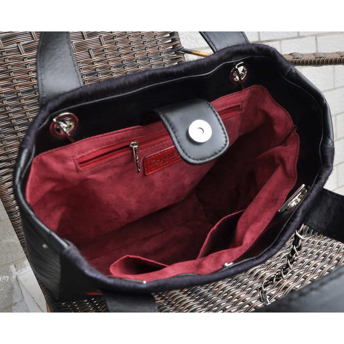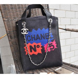 2015 Chanel Patchwork Shearling Large Shopping Bag A92594 Black