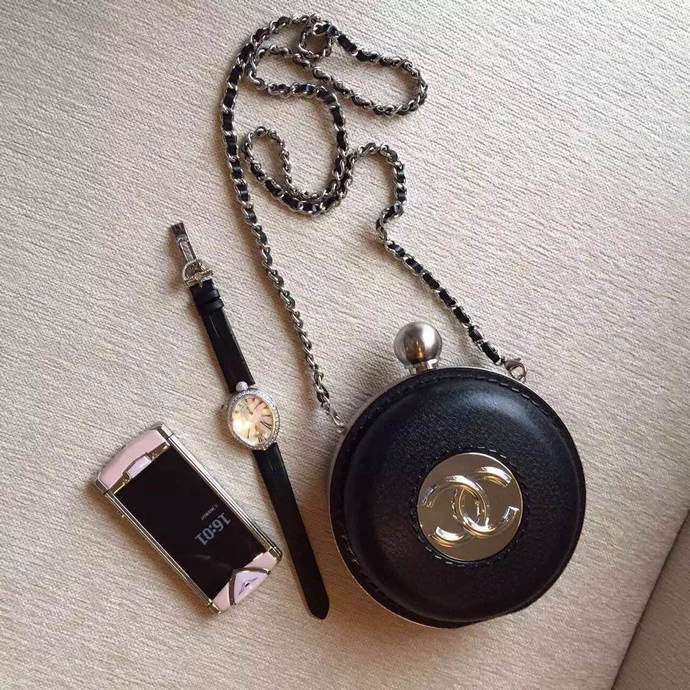 2015 Chanel Plexiglass Globe Clutch Bag Black