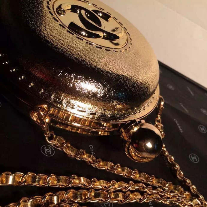 2015 Chanel Plexiglass Globe Clutch Bag Gold