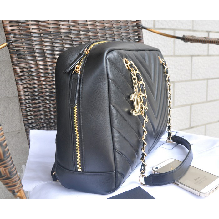 2015 Chanel Shopper Bag Sheepskin Leather A90688 Black