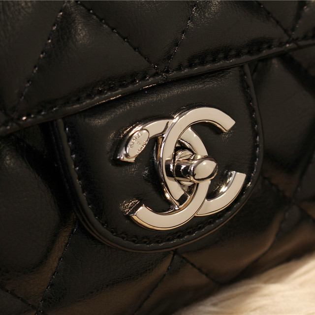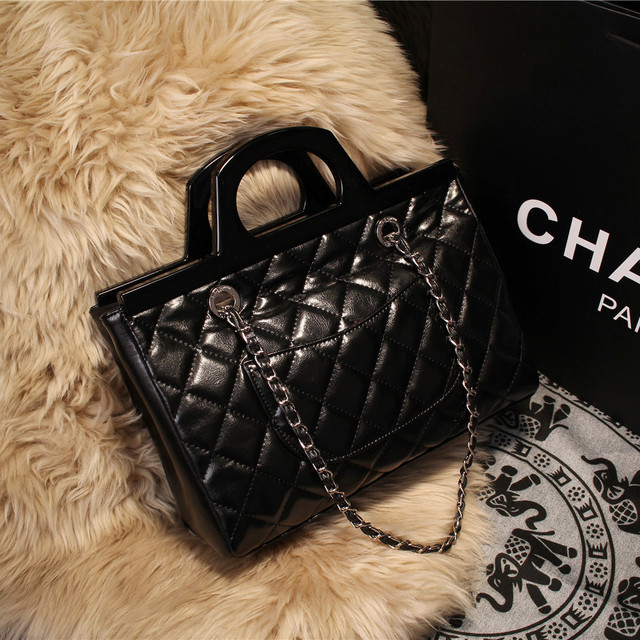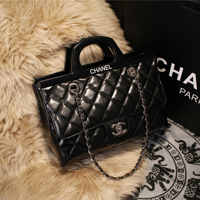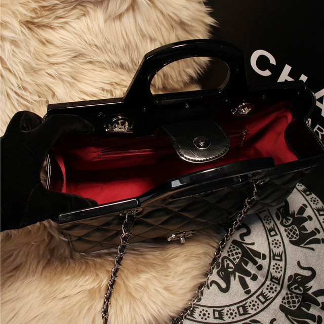 2015 Chanel Shopping Bag Iridescent Leather Rigid Handles A68051 Black