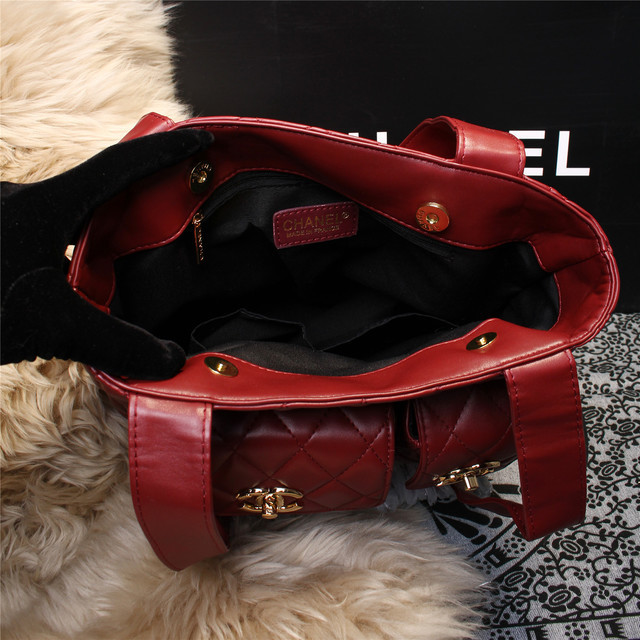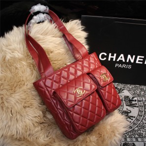 2015 Chanel Shoulder Tote Bag Sheepskin Leather A68032 Red