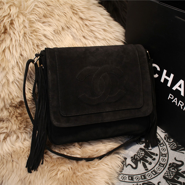2015 Chanel Suede Leather Messenger Bag A68033 Black