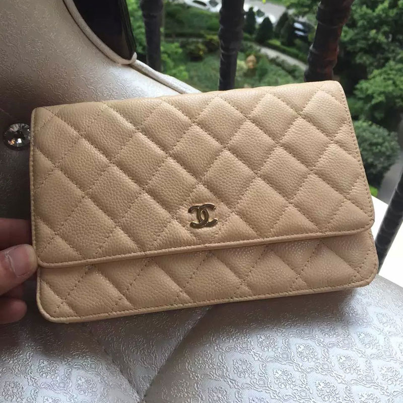 2015 Chanel WOC mini Flap Bag Apricot Original Caviar leather A33808